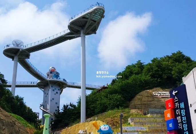 도째비골 스카이밸리는 강원도 동해시 묵호진동에 위치한 관광 명소입니다. 이곳은 해발 약 59m 높이의 스카이워크를 통해 동해의 푸른 바다를 한눈에 담을 수 있습니다. 스카이워크는 길이 약 180m로, 투명한 바닥을 통해 아래의 절경을 감상할 수 있어 아찔한 스릴을 만끽할 수 있습니다.