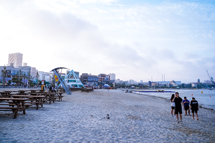 물이 얕고 잔잔해 아이들과 함께 물놀이를 즐기기에도 안전해 보였습니다. 근처에는 해양스포츠를 즐길 수 있는 시설도 많아 활기찬 분위기가 느껴졌습니다.