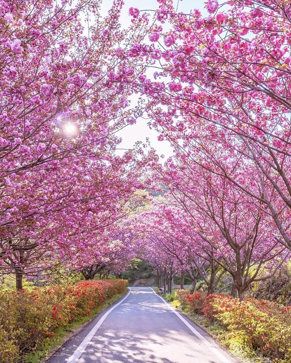 문수사는 겹벚꽃 명소로 유명하여, 2024년 4월 23일에 방문하였습니다. 주차장에서 사찰로 이어지는 길은 겹벚꽃이 만개하여 분홍빛 터널을 이루고 있었습니다. 이 길을 따라 걷는 동안 꽃잎이 흩날려 마치 꽃비를 맞는 듯한 기분이 들었습니다. 행복한 여행을 할 수 있는 서산 가볼만한곳 베스트10입니다.