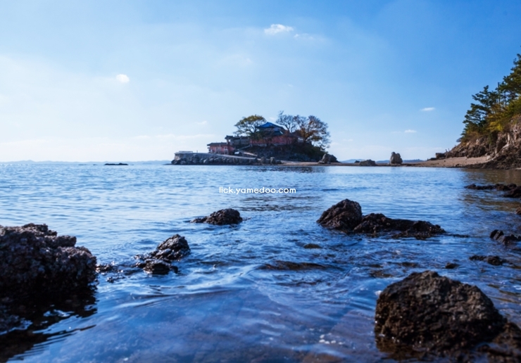 간월암에 도착하기 위해서는 주차장에서 바닷길을 따라 걸어야 하는데, 물이 차오르기 전의 길은 그 자체로도 특별한 경험을 선사합니다. 암자 내부에는 소박한 관음전이 자리 잡고 있어 조용히 기도하거나 마음을 가라앉히기 좋습니다.