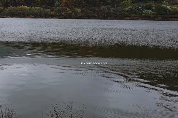 물 위로 비치는 하늘과 나무들이 잔잔한 물결과 함께 어우러져 평온한 느낌을 줍니다. 저수지 주변에는 낚시를 즐기는 사람들도 많아 한적한 분위기가 이어집니다.