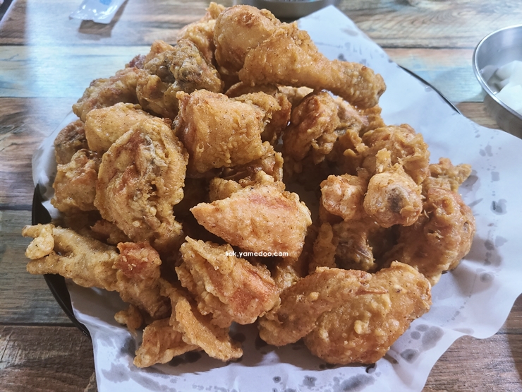 기름기가 많지 않고 담백해서 계속 손이 가더라고요. 특히 닭발과 목 부위까지 함께 튀겨져 나오는 게 이 집의 매력 포인트였습니다. 평소에 쉽게 접하기 어려운 부위들이 별미로 다가왔어요.