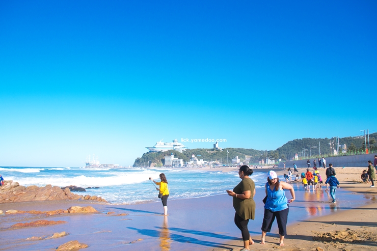 해변에는 사람들이 삼삼오오 모여 사진을 찍거나 바다를 바라보며 여유를 즐기고 있었습니다. 저도 바다와 가까이에서 발을 담그며 한동안 파도 소리를 들었어요. 지인들과 사진도 찍고 신나는 모습들이 보입니다.