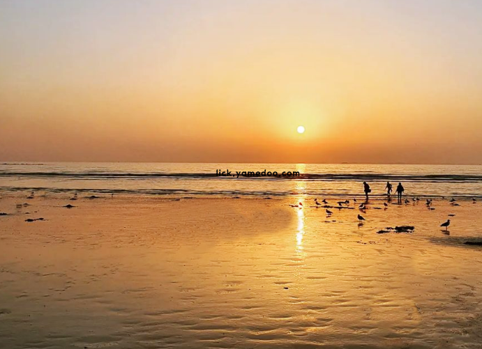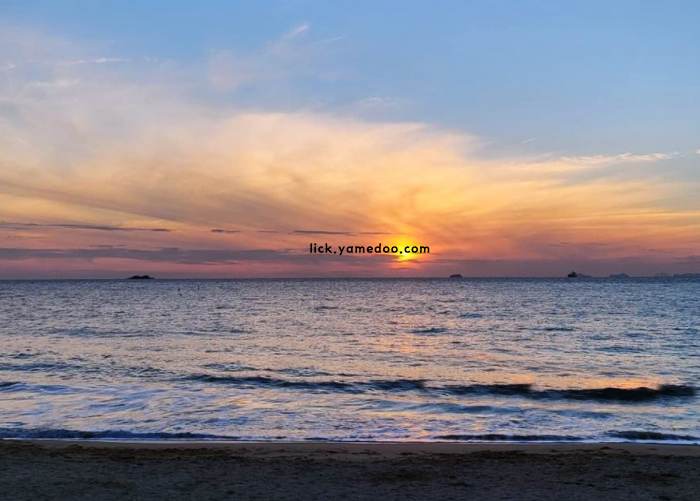 해가 지기 시작하면 모래사장 위로 긴 그림자가 드리워지고 바다색도 서서히 짙어졌습니다. 노을이 퍼지기 시작하자 사람들의 걸음도 잠시 멈추고 하늘을 바라보게 됩니다.