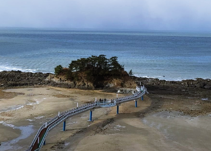 해변에서 조금 떨어진 곳에선 갯벌 체험을 하는 아이들 모습도 보였고, 그 웃음소리가 멀리까지 퍼졌습니다. 밀물과 썰물의 차가 크다는 이야기를 들었는데, 실제로 바닷길이 열리는 장면을 마주하니 신기했습니다.