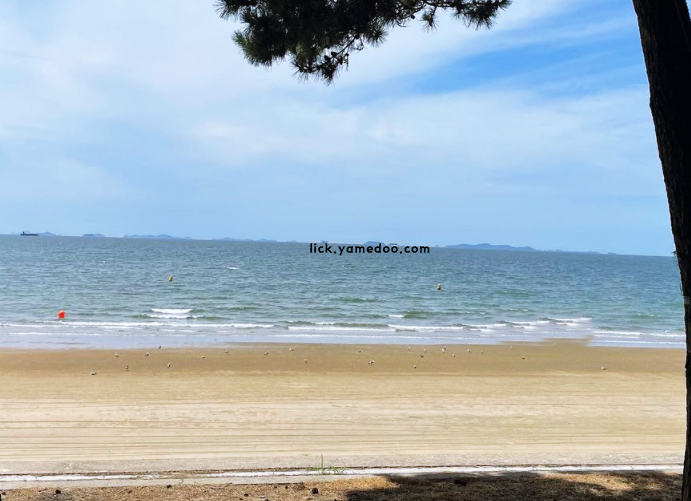 물은 맑고 잔잔해서 발끝에 닿는 촉감만으로도 여름이 느껴졌습니다. 바다를 등지고 앉으면 뒤쪽으론 소나무숲이 펼쳐져 있고, 바람에 따라 나뭇잎 소리가 잔잔하게 들려왔습니다. 해변을 걷는 사람들 간의 간격이 넓어 혼자만의 시간을 보내기에도 좋았습니다. 가까운 곳에 있는 작은 선착장에서 낚시를 즐기는 모습도 인상적이었습니다.