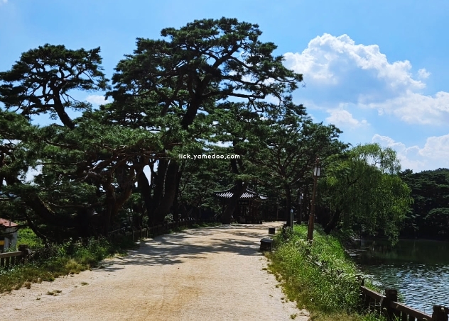 의림지에 도착하자 고요한 수면 위로 버드나무가 그림처럼 늘어져 있었습니다. 수양버들 사이로 걷는 산책길이 무척 운치 있었습니다. 연못 가운데 작은 정자가 있었는데, 바람 따라 일렁이는 물결 위에 정자가 떠 있는 듯했습니다.