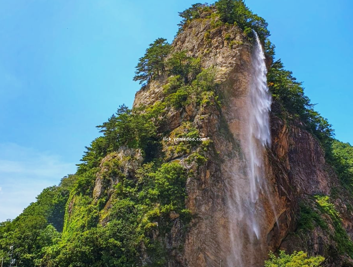 주변으로는 깔끔하게 정돈된 산책로가 이어져 있어 걷기에도 무리가 없었습니다. 폭포를 감싸고 있는 암벽은 거칠고도 견고한 인상을 주어 자연의 힘을 고스란히 느낄 수 있었습니다. 가까이에서 보면 물살이 생각보다 힘차게 떨어져 보는 것만으로도 스트레스가 날아갔습니다.