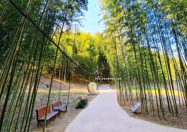 길가에는 잠시 쉬어갈 수 있는 의자들이 놓여 있어 걷다가 쉬어가기도 좋았습니다. 아이들은 대나무 사이를 오가며 마치 비밀의 숲에 들어온 것처럼 신이 나 보였습니다.