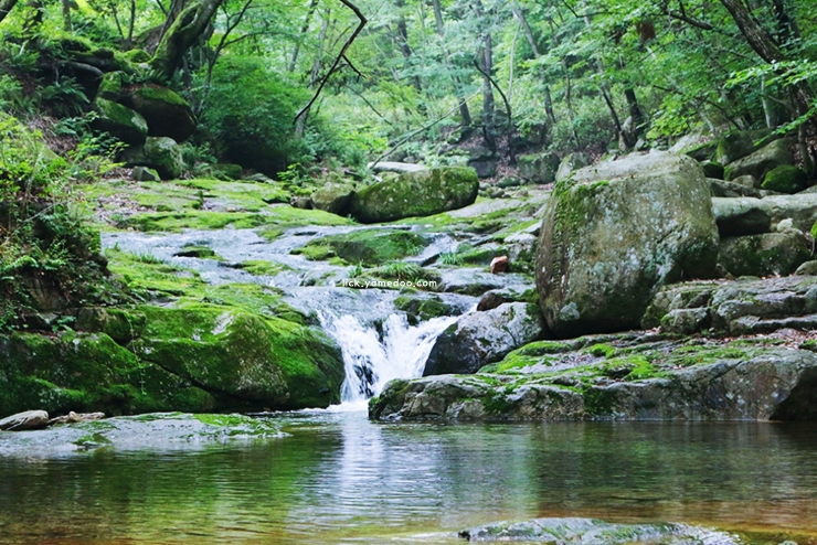 물소리와 바람소리가 겹쳐 들리는 고요한 풍경은 오랜만에 마음을 쉬게 해주었습니다. 조금 더 안쪽으로 걸어가면 조용한 바위 터가 나와서 잠시 앉아 발 담그고 눈을 감았습니다.