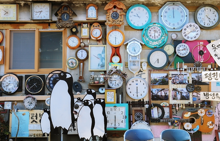 펭귄마을에 들어서자 골목길마다 알록달록한 벽화와 설치 예술이 눈을 사로잡았습니다. 오래된 골목에 펭귄 조형물들이 익살스럽게 앉아 있어서 사진을 안 찍고는 지나칠 수 없었습니다. 곳곳에 놓인 옛 물건들은 마치 시간이 멈춰버린 듯한 정겨움을 주었고요.