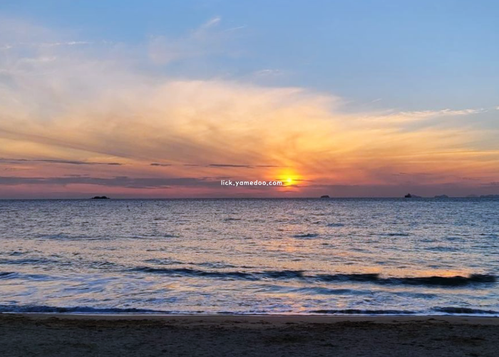 바다 위로 낙조가 번지기 시작하자 모두가 카메라를 꺼내들 만큼 풍경이 아름다웠습니다. 파라솔 아래에 앉아 바닷바람을 맞고 있으니 도시의 소음이 멀게 느껴졌습니다.