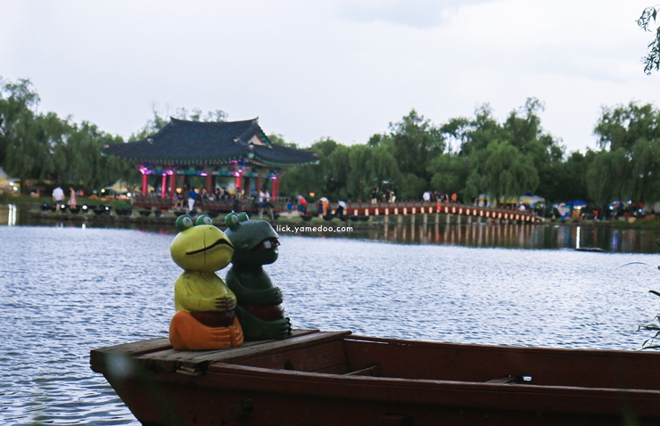 궁궐 모형을 따라 들어가면 화려한 단청과 기와 지붕이 눈길을 사로잡았습니다. 아이들은 왕과 왕비 복장을 입고 사진을 찍으며 한껏 즐거워했습니다. 연못 주변을 걷다 보면 바람에 물결이 일렁이고, 그 위로 나무 그림자가 어른거렸습니다.