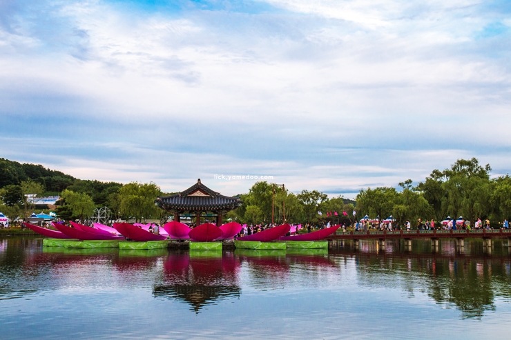 궁남지에 도착하자 잔잔한 연못 위로 정자가 고요히 떠 있는 모습이 눈에 들어왔습니다. 연꽃이 활짝 피어 있는 계절이라 연못 전체가 분홍빛으로 물들어 있는 충남 가볼만한곳 베스트10 여행지 입니다.