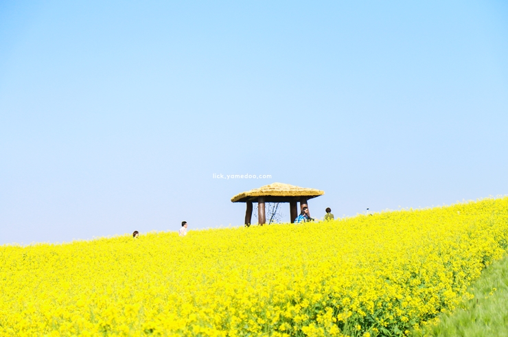 시기를 달리해 다시 찾으면 하얗게 메밀꽃이 피어 있어 들판 전체가 부드러운 눈밭처럼 변해 있었습니다. 해가 쨍한 날에는 노란 유채꽃이 활짝 피어 있어 눈앞이 환하게 밝아졌습니다.
