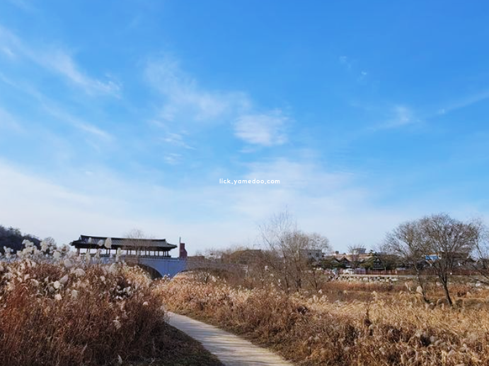 주변엔 정자도 마련되어 있어 쉬어가기 좋고, 물가에 앉아 있으면 시간 가는 줄 모르고 머무르게 됩니다. 붉은 석양이 퍼질 무렵, 제방 위로 비치는 빛이 더욱 따뜻하게 다가왔습니다. 그 풍경을 바라보며 오래된 흔적이 오늘의 고요와 어우러지는 장면에 마음이 잔잔해졌습니다. 아무 말 없이도 많은 이야기를 전해주는 그런 공간이었습니다.
